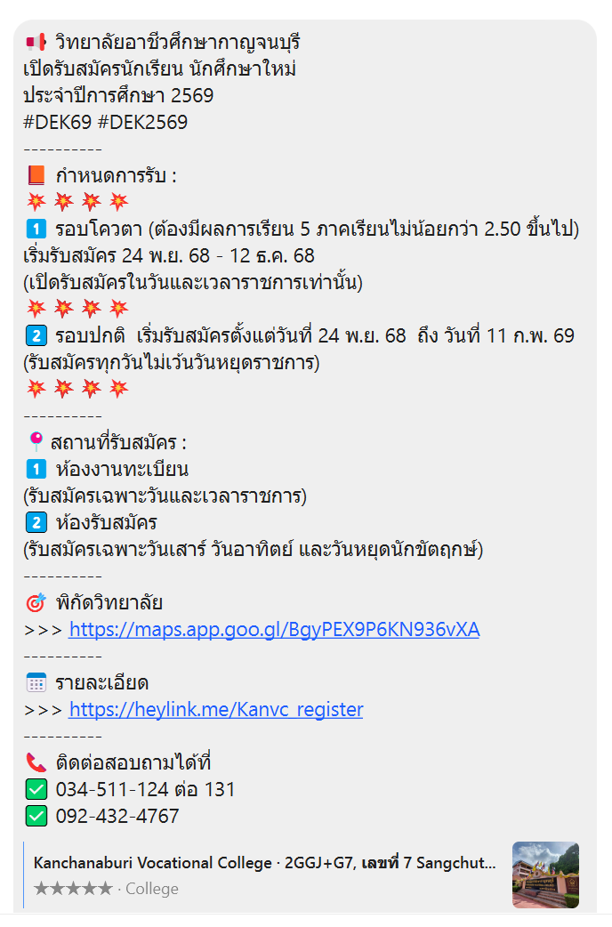 รับสมัครนักเรียน นักศึกษาใหม่ประจำปีการศึกษา 2569 https://heylink.me/Kanvc_register